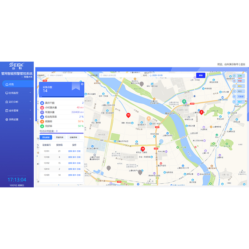 山科智慧水務(wù)平臺是對水務(wù)領(lǐng)域進(jìn)行感知物聯(lián)、集成分析、智能決策和展示執(zhí)行的一體化解決方案及系統(tǒng),實現(xiàn)水務(wù)營運(yùn)的整體掌控,確保水務(wù)運(yùn)行安全,降低水務(wù)運(yùn)行漏損及成本,提升人員效益和水務(wù)設(shè)施壽命,提高水務(wù)經(jīng)營管理 的核心能力。