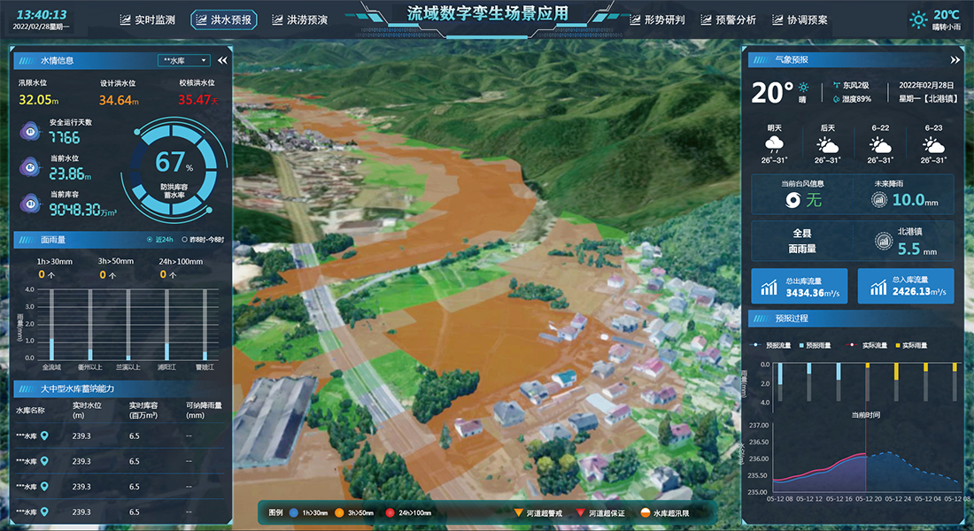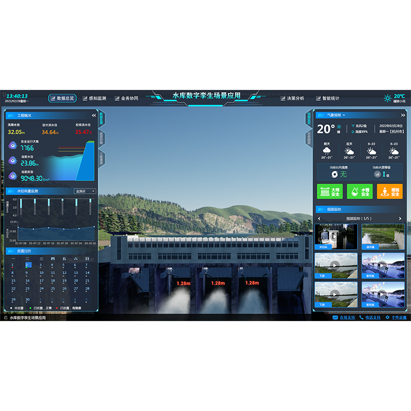 水利數(shù)字孿生場(chǎng)景應(yīng)用依托感知集成實(shí)時(shí)狀態(tài)、數(shù)據(jù)治理、GIS及BIM圖形引擎、水利專業(yè)及智能識(shí)別模型等建立強(qiáng)大的數(shù)字孿生底板,對(duì)物理水利工程全要素以及管理過(guò)程進(jìn)行數(shù)字化映射,實(shí)現(xiàn)可視化場(chǎng)景呈現(xiàn),賦能水庫(kù)、水閘、泵站、灌區(qū)、海塘、流域等水利場(chǎng)景管理,構(gòu)建具有預(yù)報(bào)、預(yù)警、預(yù)演、預(yù)案功能的智慧水利體系。